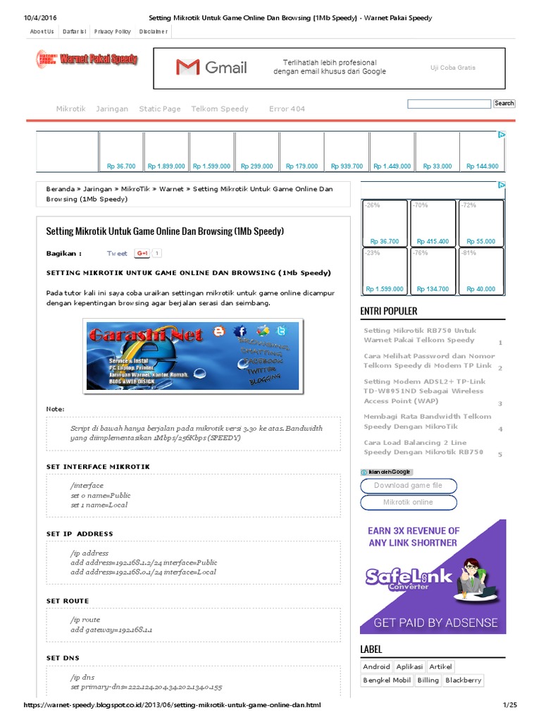 Postingan ini hanyalah gambaran untuk dipelajari dan dicoba sampai dapat memahaminya selanjutnya bisa mengembangkannya sendir i. Setting mikrotik untuk game online campur browsing update 2012 more intelegent more powerfull pada tutor kali ini saya coba uraikan settingan mikrotik untuk game online dicampur dengan kepentingan browsing (ngenet) agar berjalan serasi dan seimbang. Perangkat router yang harganya terbilang.